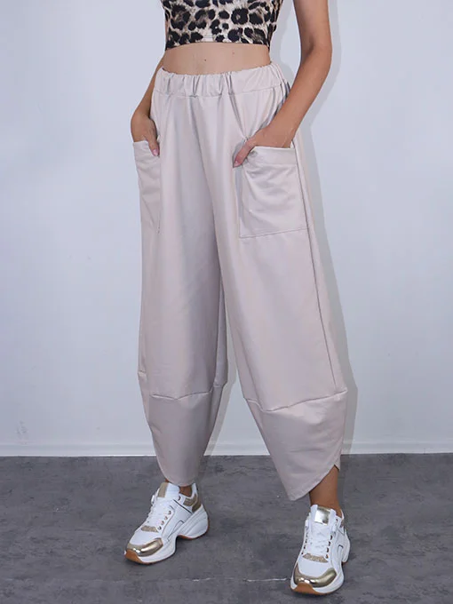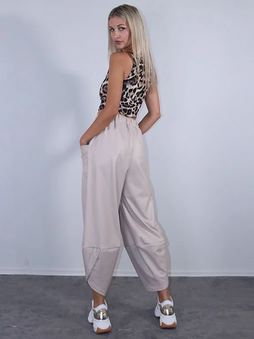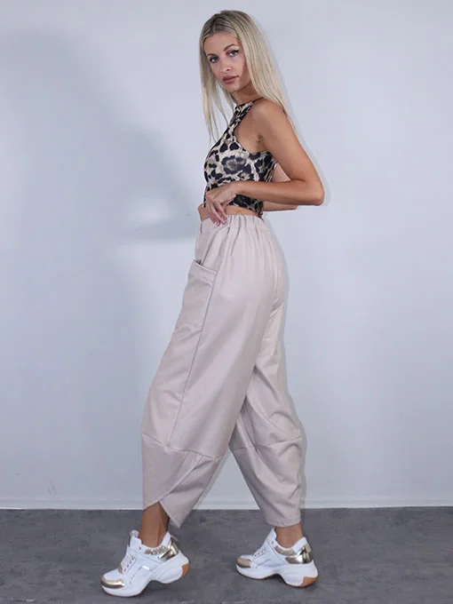 • Σαλβάρι δερματίνη φαρδύ με λάστιχο και τσέπες.