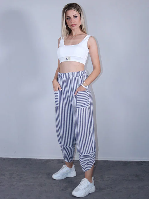 Σαλβάρι ριγέ φαρδύ με τσέπες.