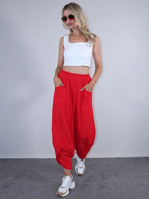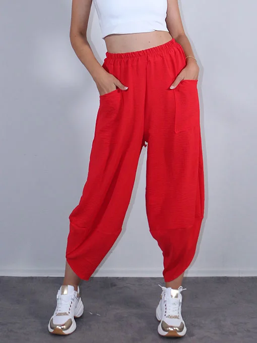 • Σαλβάρι φαρδύ με λάστιχο και τσέπες.