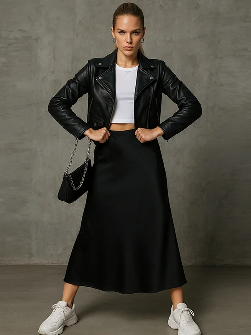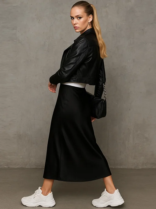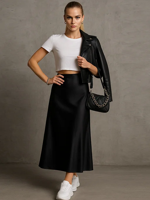 • Σατέν φούστα σε άλφα γραμμή. Το μήκος μέχρι τον αστράγαλο την κάνει ιδανική για day-to-night εμφανίσεις, ενώ η φίνα γυαλάδα του σατέν υφάσματος χαρίζει αίσθηση πολυτέλειας.