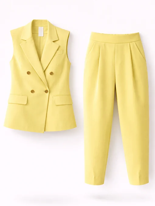 Minimal, δυναμικό και απόλυτα κομψό. Το σετ με oversized γιλέκο που σκεπάζει την περιφέρεια και παντελόνι φαρδιάς γραμμής που στενεύει διακριτικά πάνω από τον αστράγαλο, δημιουργεί ένα σύγχρονο power look. Ιδανικό για statement εμφανίσεις από το πρωί έως το βράδυ