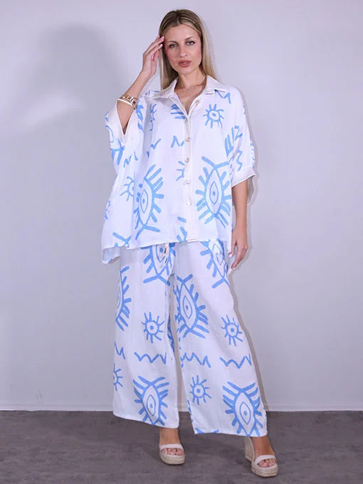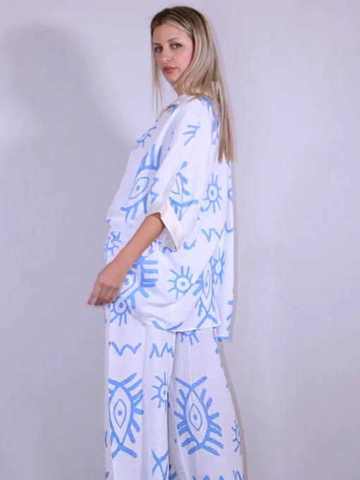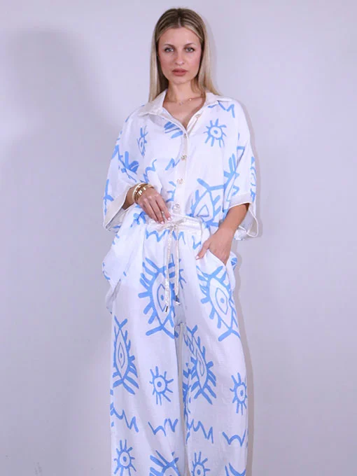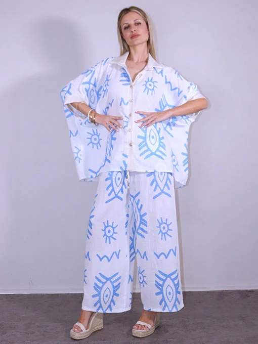 Σετ βαμβακερό γάζα παντελόνα & πουκαμίσα φαρδιά με χρυσές λεπτομέρειες