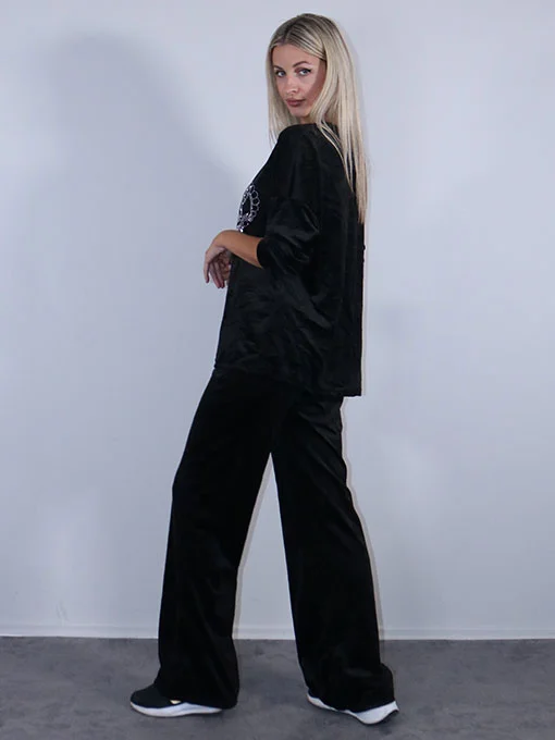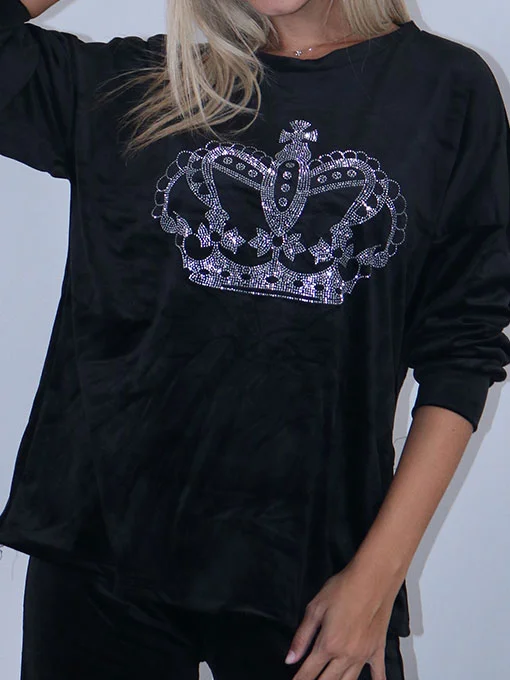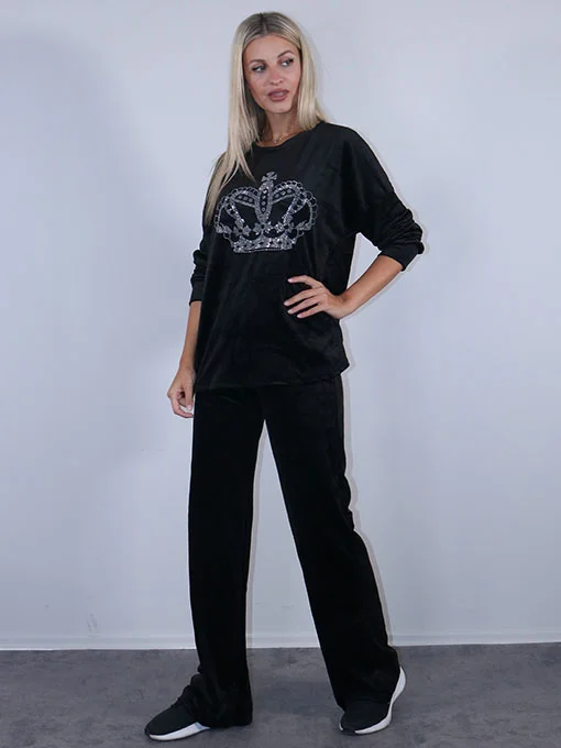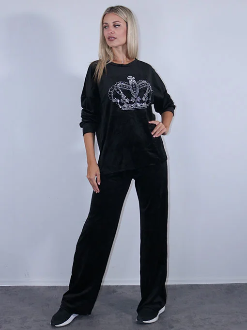 Σετ βελούδο παντελόνα και μπλούζα με κορώνα.