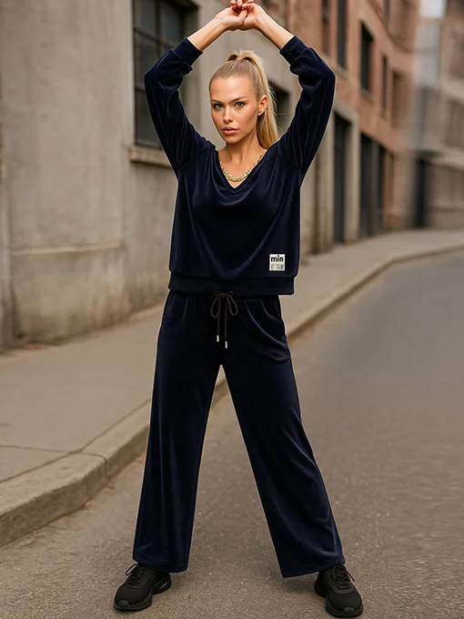 Σετ βελούδο μπλούζα με αλυσίδα και παντελόνι
