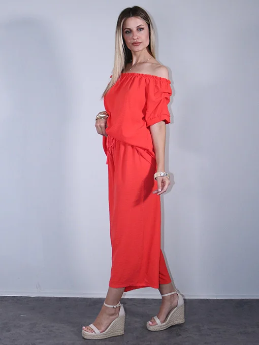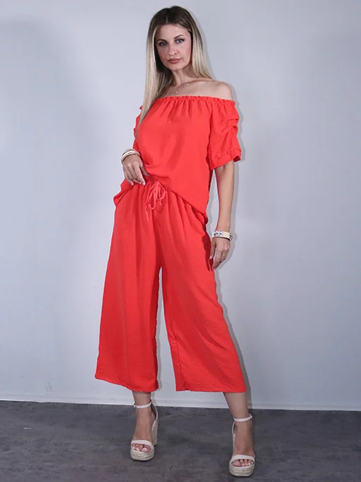 • Σετ ζιπ κιλότ με λάστιχο στην μέση & μπλούζα με σούρες στα μανίκια και λάστιχο που το κατεβάζεις στους ώμους..