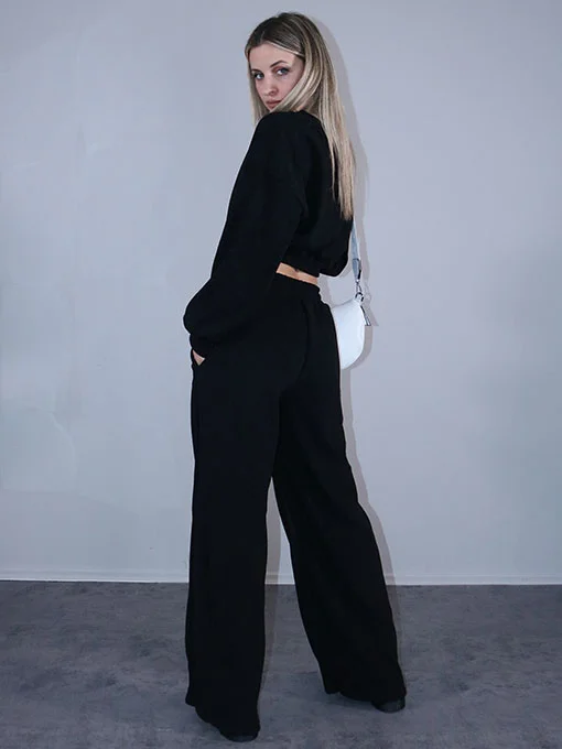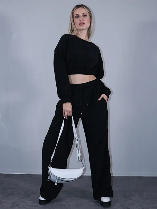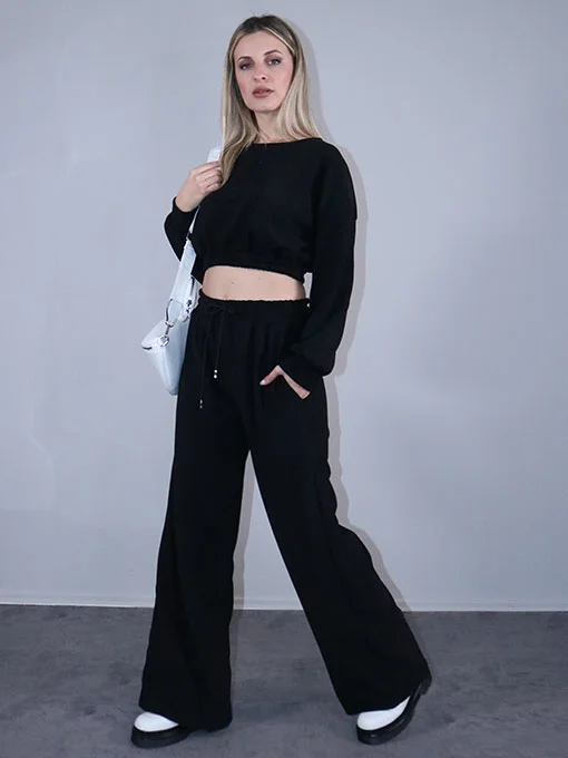 Σετ κοτλέ ριπ μπλούζα crop και παντελόνα με τσέπες.
