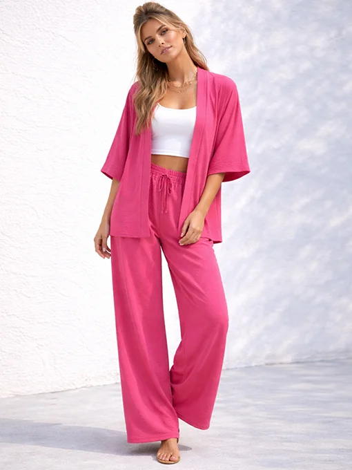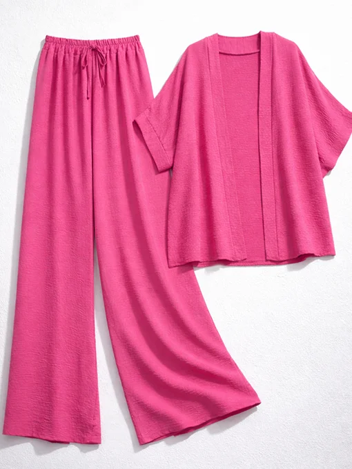 Αέρινο oversize σετ με φαρδιά παντελόνα και loose κιμονό για άνετες, stylish εμφανίσεις όλη μέρα. Ξεχωρίζει για τη χαλαρή γραμμή του και τη μοντέρνα αισθητική του.