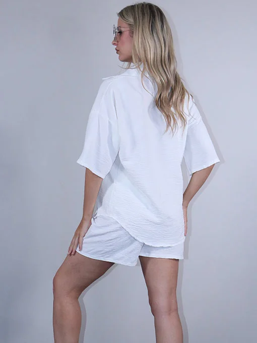• Σετ πουκαμίσα φαρδιά και βερμούδα με λάστιχο.