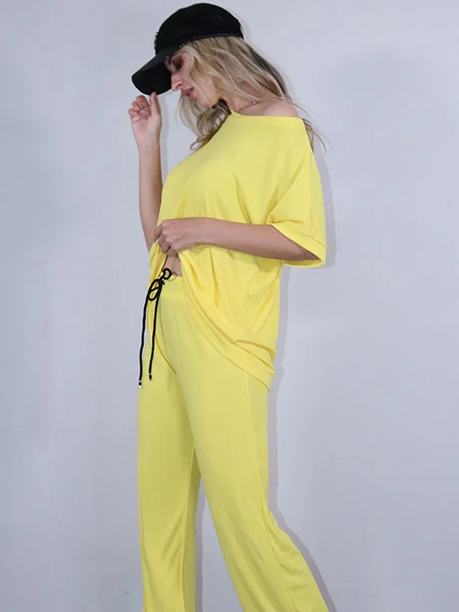 • Σετ ριπ παντελόνα με κορδόνι και μπλούζα μακριά.