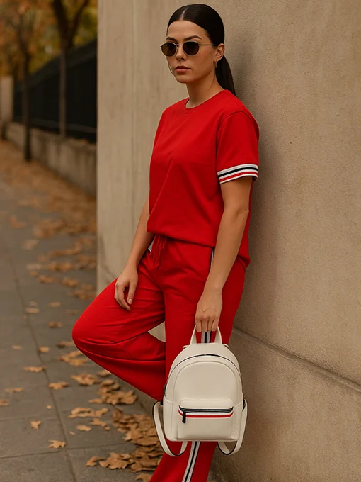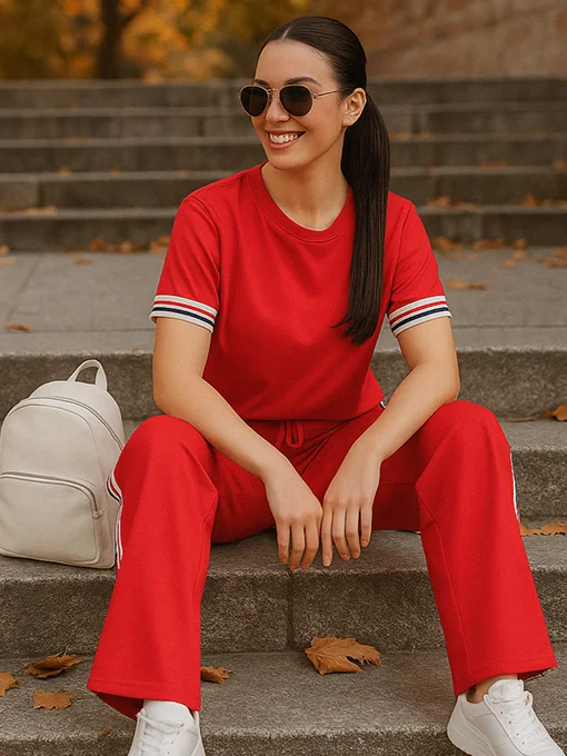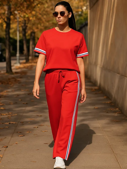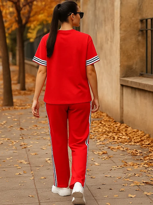 • Σετ φούτερ με ρίγα κόκκινη στο πλάι