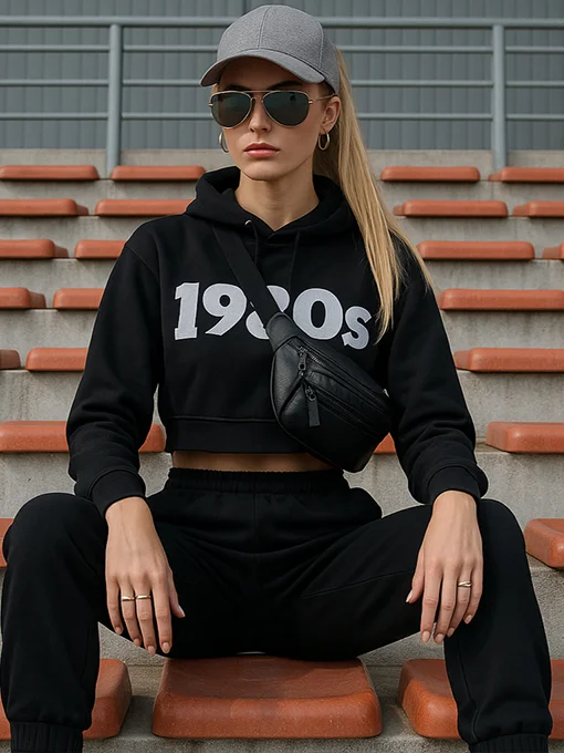 Σετ φούτερ μπλούζα crop με κουκούλα και παντελόνι