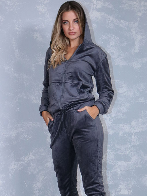 Σετ φόρμα γκρι βελούδο παντελόνι – ζακέτα