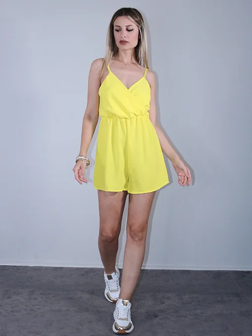• Σορτσάκι ολόσωμο κρουαζέ με ρυθμιζόμενες τιράντες και λάστιχο στην μέση.