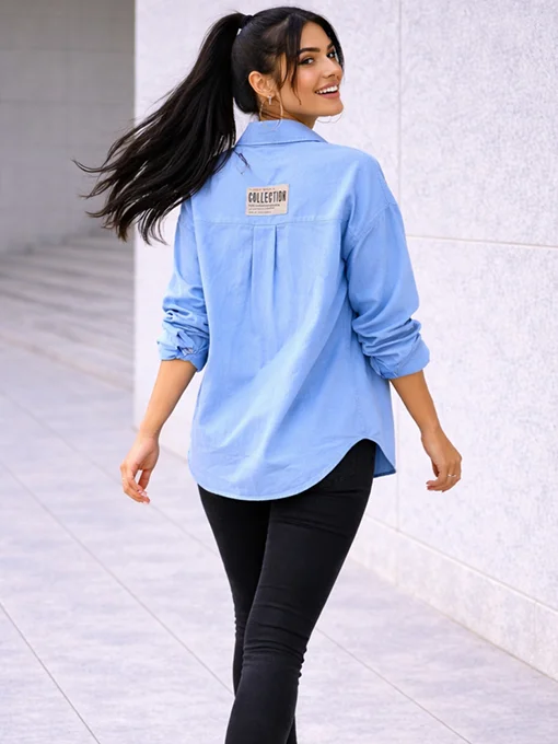 Oversize τζιν πουκάμισο με χαλαρή γραμμή, ιδανικό για layering και χρήση ως ελαφρύ πανωφόρι. Διακριτικό ταμπελάκι που ολοκληρώνει το casual-editorial ύφος. Συνδυάζεται εύκολα με τζιν, crop tops και sneakers για μοντέρνες καθημερινές εμφανίσεις.