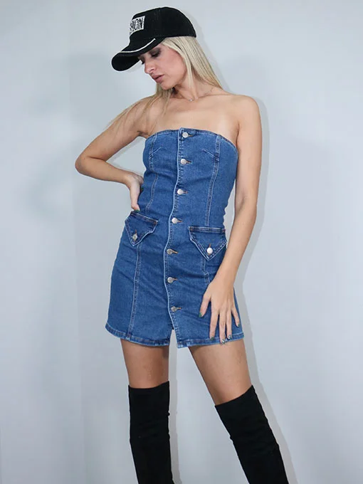 Τζιν σετ φόρεμα στράπλες και μπολερό ελαστικό.