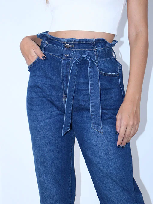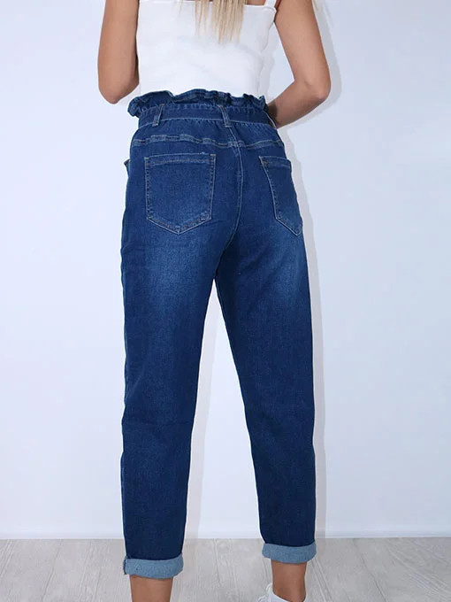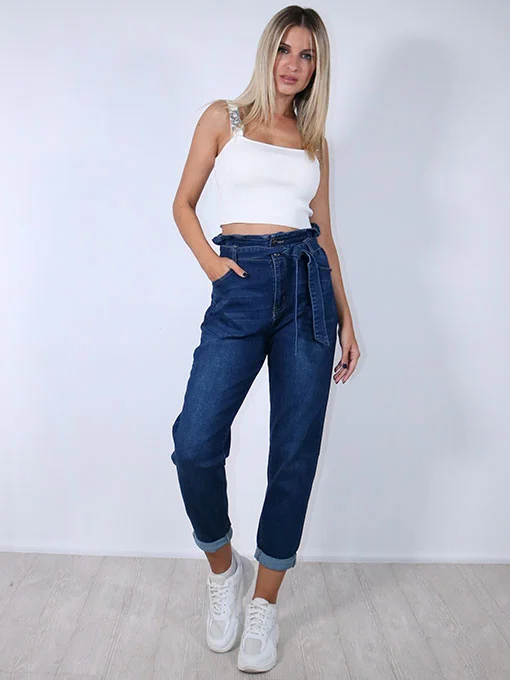 Τζιν mom-fit με λάστιχο στη μέση και ζώνη.