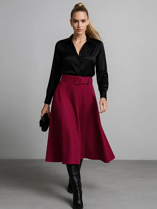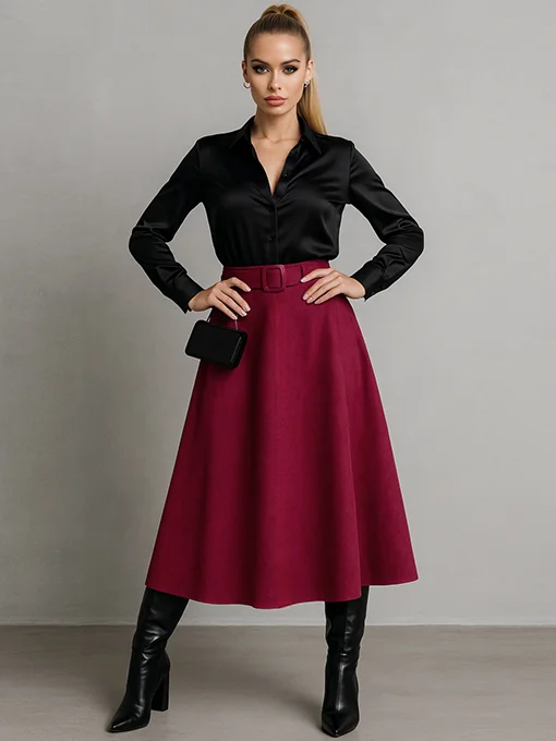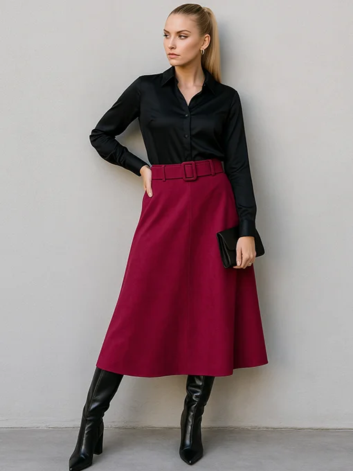 Φούστα closs μίντι με ζώνη σε άλφα γραμμή