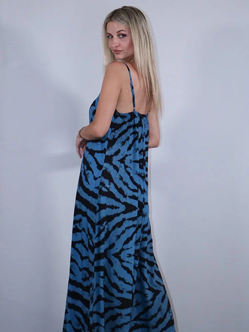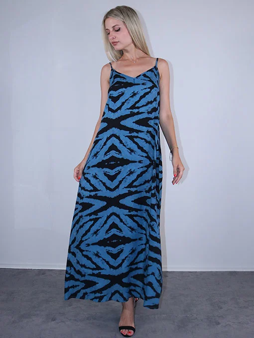Φόρεμα βισκόζ μακρύ ζακάρ με ve ντεκολτέ και ρυθμιζόμενες τιράντες