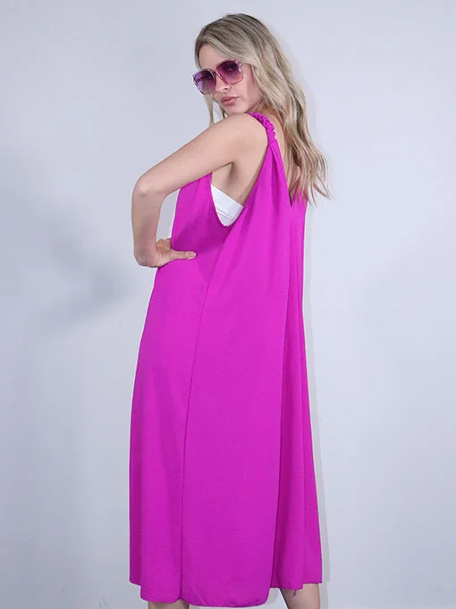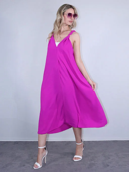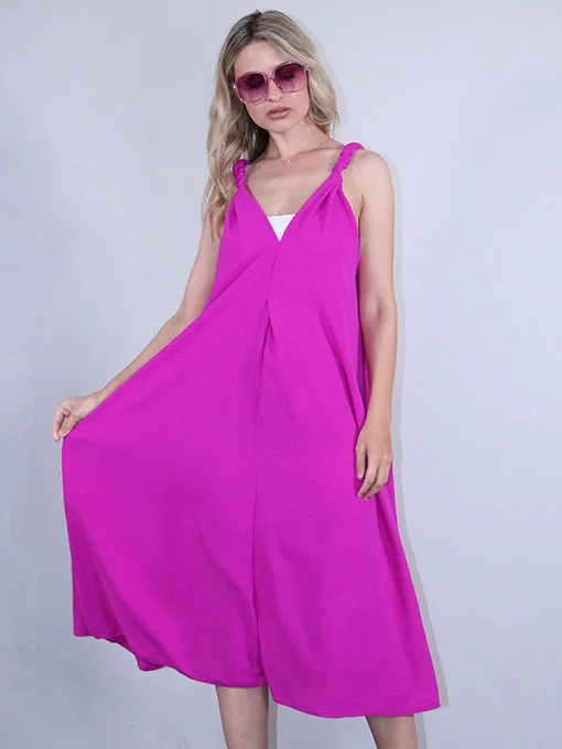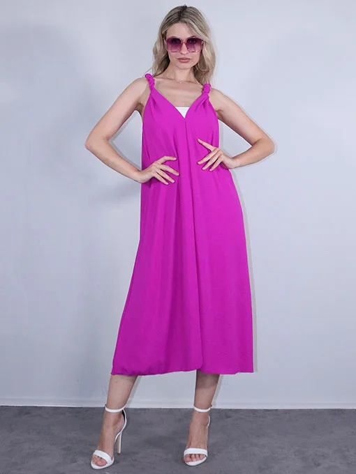 Φόρεμα μίντι φαρδύ με στριφτές τιράντες.