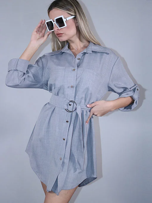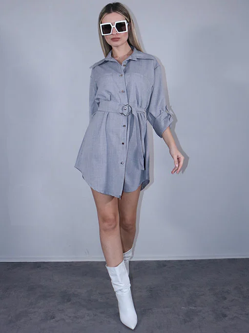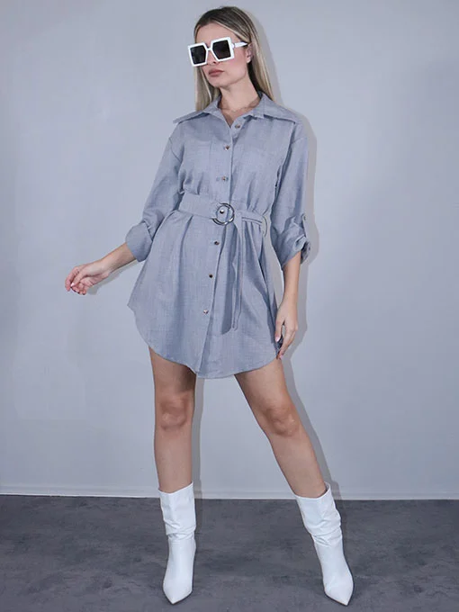 Φόρεμα πουκαμίσα με ζώνη ασύμμετρο.