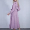 Φόρεμα κρουαζέ με γιακά, αποσπώμενη ζώνη και λάστιχο στην μέση.