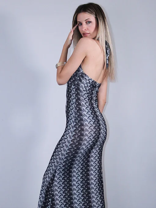 • Φόρεμα boho πολύ ελαστικό με πολύχρωμο γεωμετρικό τύπωμα. Δένει στο στήθος και πίσω από τον λαιμό