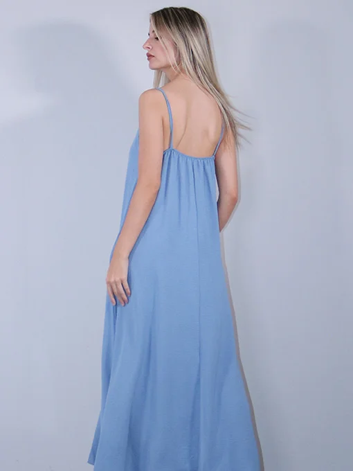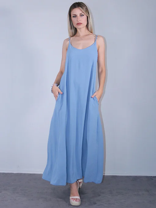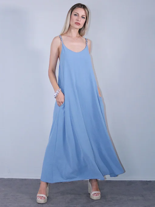 Φόρεμα closs μακρύ με τσέπες και ασημένιες χάντρες στις τιράντες.
