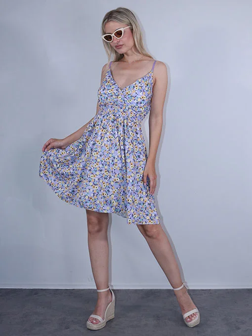 Φόρεμα floral κρουαζέ με cups στο στήθος και ρυθμιζόμενες τιράντες.