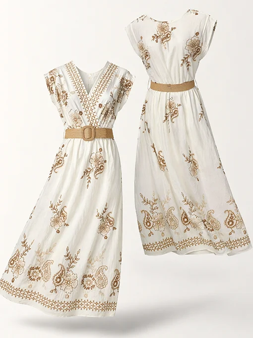 • Ανάλαφρο boho midi φόρεμα με ιδιαίτερο κέντημα, κρουαζέ λαιμόκοψη και ζώνη που αγκαλιάζει τη μέση. Θηλυκό, κομψό και αέρινο, είναι ιδανικό για ξεχωριστές εμφανίσεις.