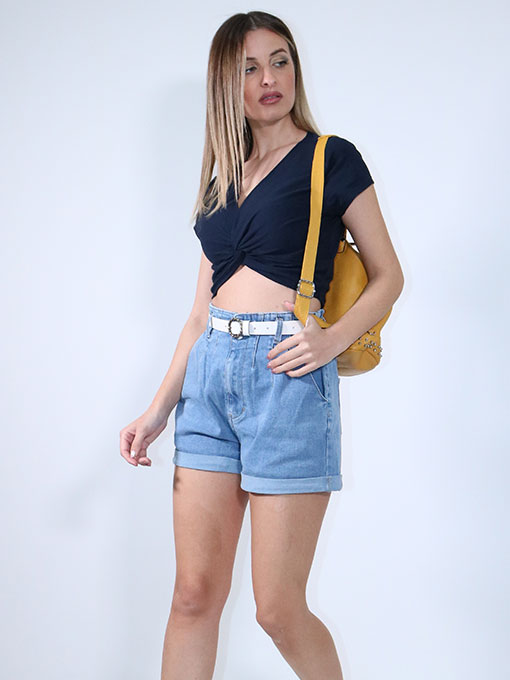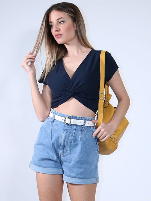 CROP TOP ΜΠΛΕ ΜΟΝΟΧΡΩΜΟ