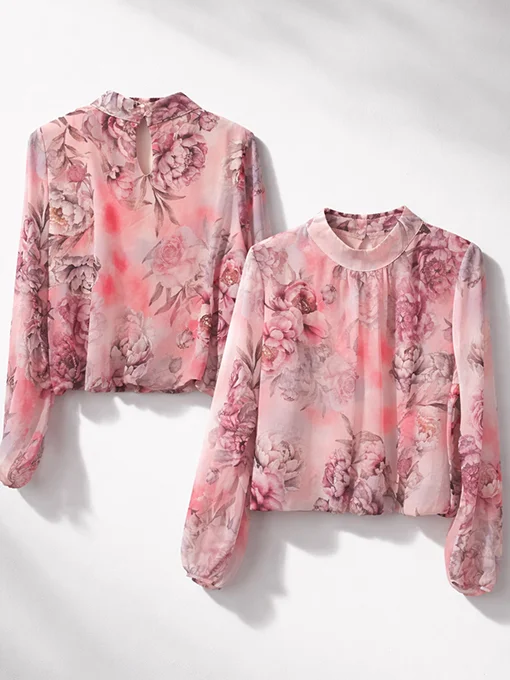 Αέρινη μπλούζα από ανάλαφρο σιφόν με ρομαντικό floral ντεσέν. Το κάτω μέρος γυρίζει προς τα μέσα δημιουργώντας μπαλού εφέ. Συνδυάζεται άψογα με pencil παντελόνια και γόβες για sophisticated αποτέλεσμα.