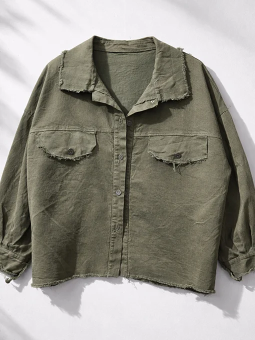 • Casual jacket σε denim υφή με γιακά, κουμπιά μπροστά και διακοσμητικές τσέπες. Οι ξέφτι λεπτομέρειες χαρίζουν μοντέρνο, edgy ύφος, ενώ η άνετη γραμμή το κάνει ιδανικό για καθημερινά και fashion looks.