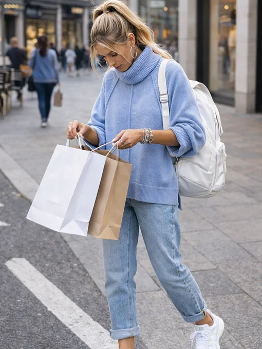 Διαθέτει χαμηλή ραγκλάν μανικοκόλληση και φαρδιά μανίκια με rib ύφανση. Η πλέξη είναι μεσαίου πάχους, απαλή και με φυσική πτώση, ενώ το μήκος καλύπτει διακριτικά την περιφέρεια. Ιδανικό για καθημερινά casual looks με μοντέρνο, effortless χαρακτήρα.