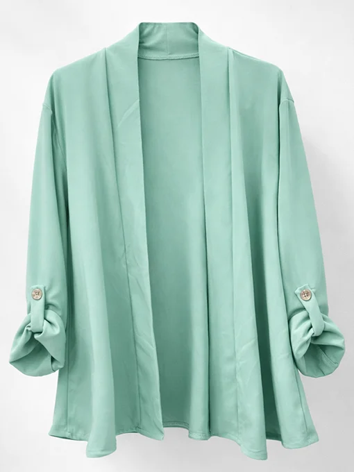 Αέρινη ζακέτα μακριά και φαρδιά γραμμή για σύγχρονο oversized αποτέλεσμα. Φοριέται ανοιχτή, με γυριστά μανίκια και κουμπί στα 3/4, ιδανική για effortless chic εμφανίσεις από το πρωί έως το βράδυ.
